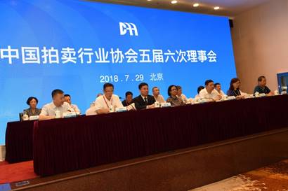 7月29日,中國拍賣行業協會五屆六次理事會在北京召開。中拍協名譽會長張延華、會長余平、常務副會長黃小堅、副會長徐勉之、雷敏、苗華甫、王中明、李偉、張力、法勇生、陳志坤、祁志峰、韓濤,秘書長李衛東,原中拍協副會長劉浚年、馬巧嘏等領導在主席臺就坐。中拍協副會長徐勉之主持。