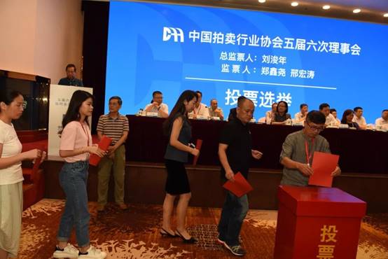 會議先后聽取了李衛東秘書長做的“臨時會員代表大會議程及有關會議文件”的報告、王中明副會長做的《關于中國拍賣行業協會通過北京中拍網絡科技有限公司向中拍平臺網絡科技股份有限公司無形資產投資的說明》、李偉副會長做的《關于<拍賣從業人員考核管理辦法(審議稿)>的起草說明》、苗華甫副會長做《關于中國拍賣行業協會會長候選人產生及選舉辦法的說明》,陳志坤副會長宣讀中共中國物流與采購聯合會黨委關于會長候選人的批復,會議審議并表決有關事項。中拍協五屆六次理事會應到理事428位,實到(含委托)363位,符合理事會召開的要求。
