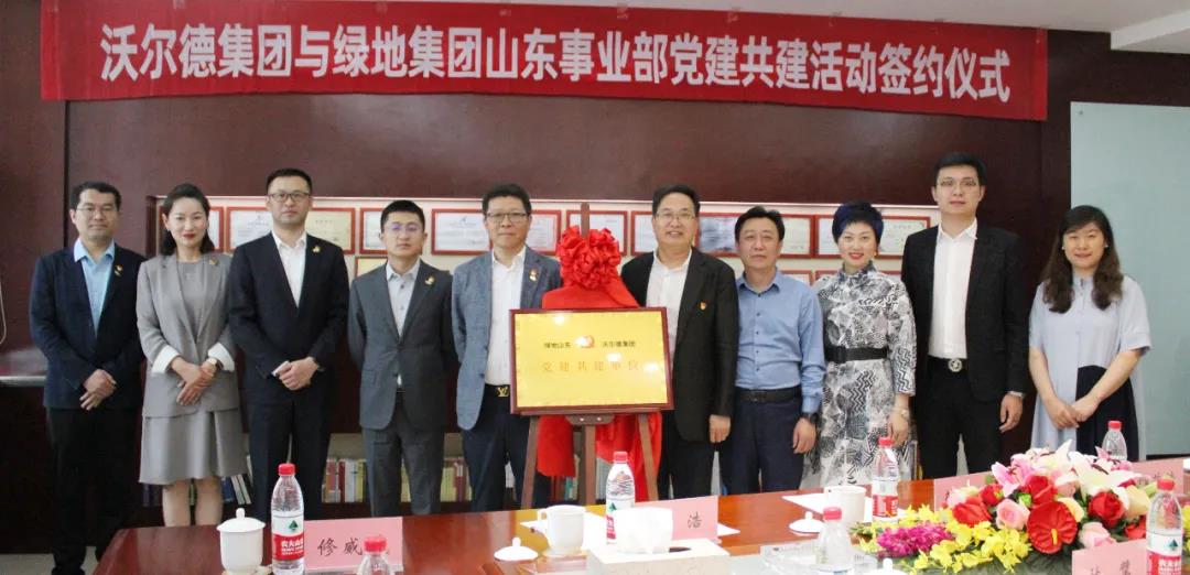 黨建共建簽約儀式上,綠地集團總裁助理、山東事業(yè)部黨委書記、總經(jīng)理薛明輝與沃爾德集團黨支部書記、董事長林擘共同簽訂《黨建共建協(xié)議書》,并為“綠地山東—沃爾德集團黨建共建單位”揭牌,標(biāo)志著雙方正式確立黨建工作和業(yè)務(wù)雙線合作的新型關(guān)系,將進一步強化“兩個黨組織”的戰(zhàn)斗堡壘和黨員先鋒模范作用。雙方也將以此為契機,充分發(fā)揮各自優(yōu)勢,通過加強交流、互助合作,進一步促進各領(lǐng)域的合作共贏。