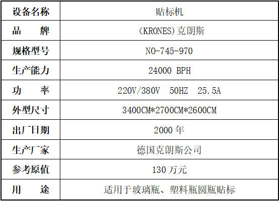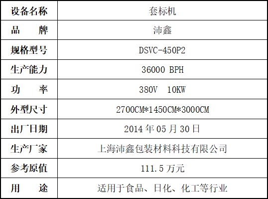 標的四:套標機,起拍價:30萬元(不含稅),標的設(shè)有保留價,競買保證金6萬元。已拆機,設(shè)備完好。