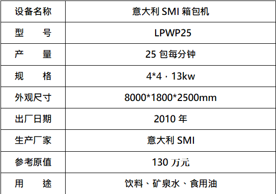 標的五:意大利SMI箱包機,起拍價:35萬元(不含稅),標的設(shè)有保留價,競買保證金6萬元。已拆機,設(shè)備完好。