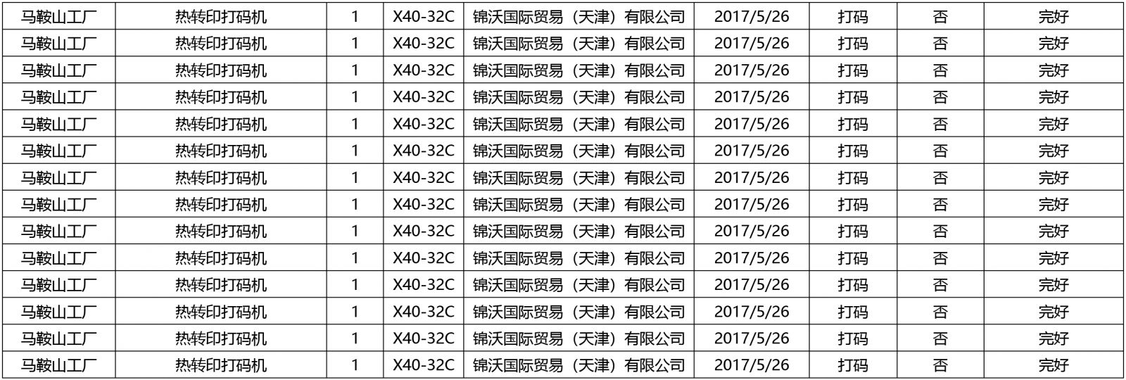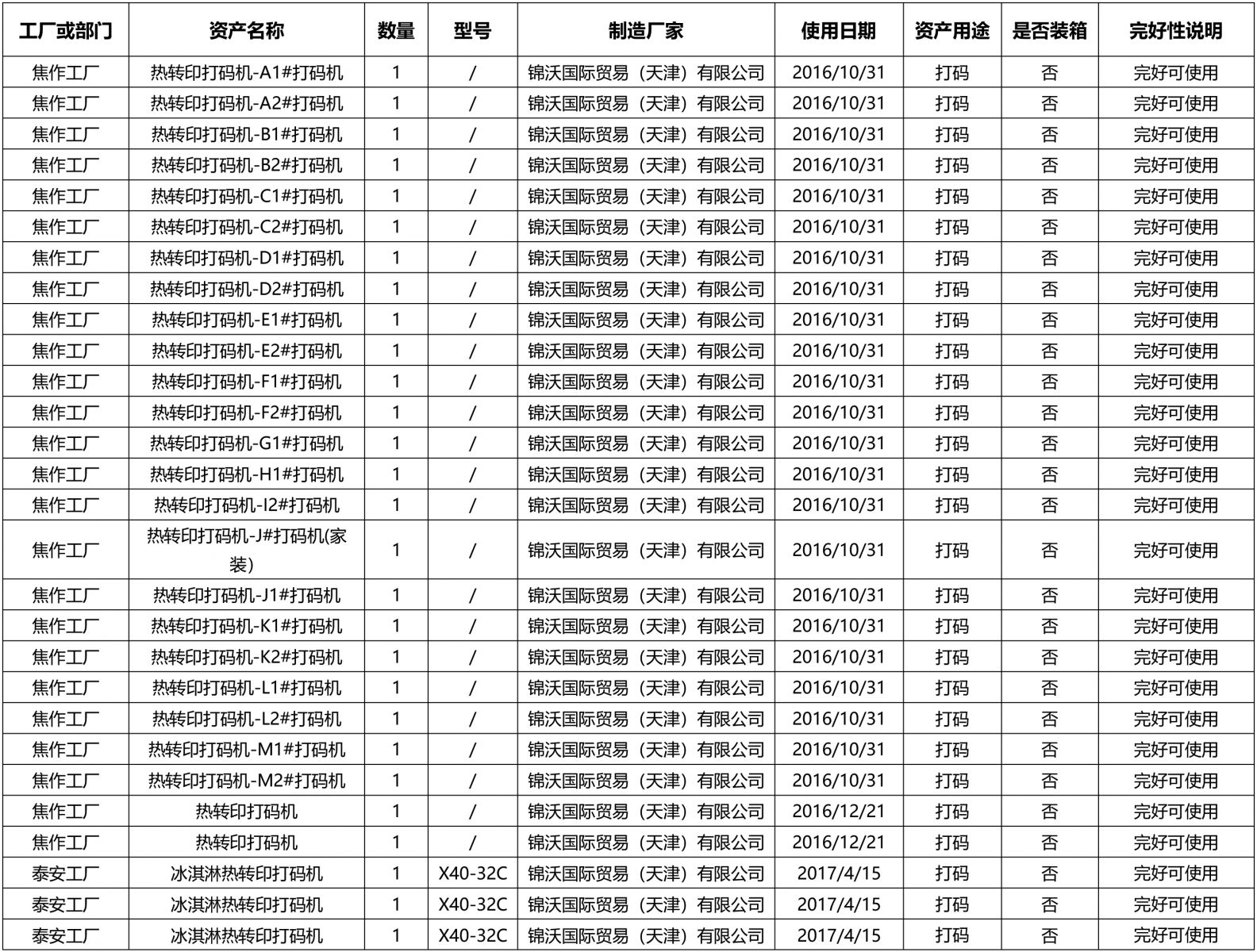 注:標的涉及多個工廠的熱轉印打碼機,如成交需與不同工廠簽訂購銷合同。