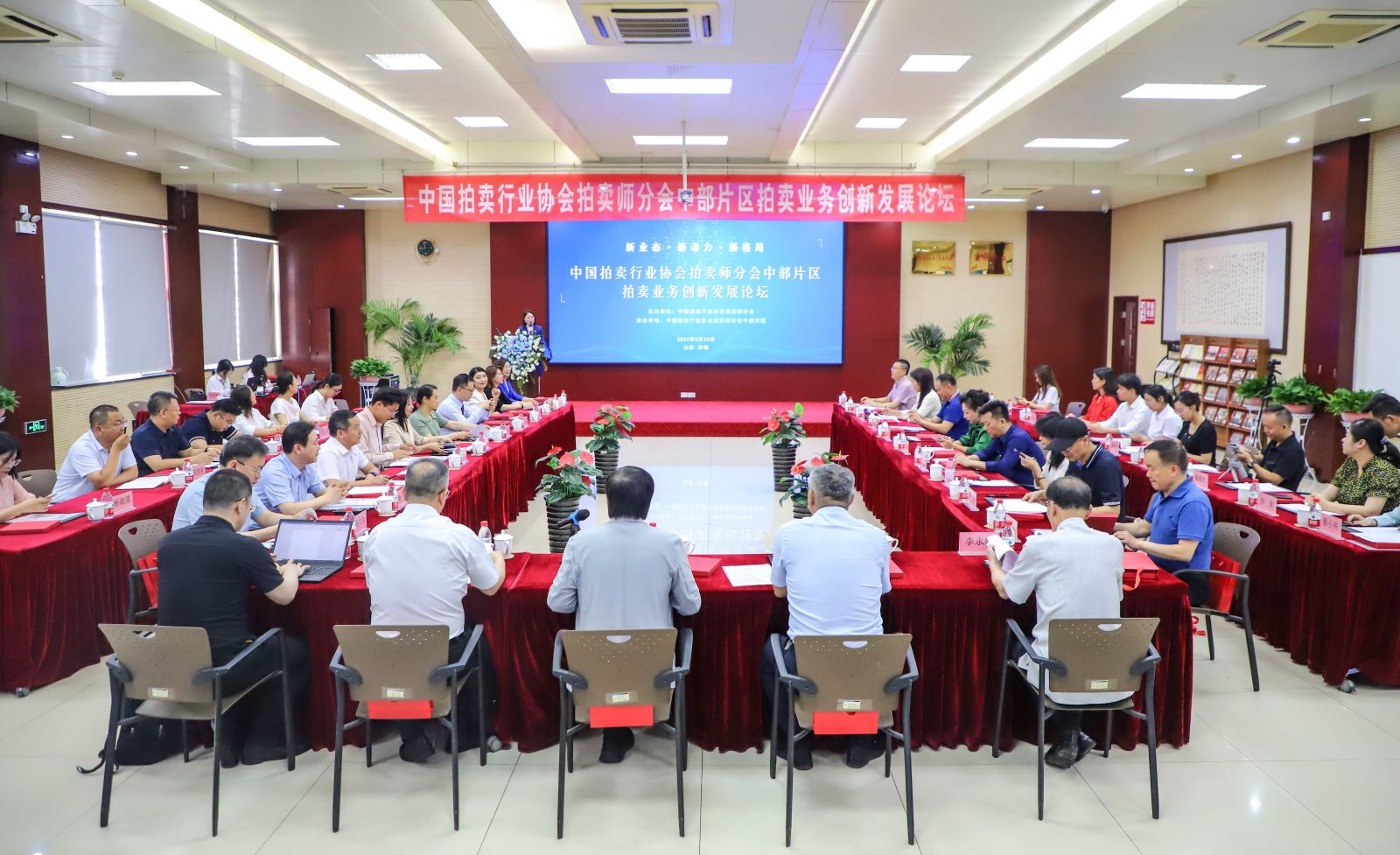 6月28日,“新業(yè)態(tài)、新動力、新格局”中國拍賣行業(yè)協(xié)會拍賣師分會中部片區(qū)拍賣業(yè)務(wù)創(chuàng)新發(fā)展論壇在濟(jì)南召開。中國拍賣行業(yè)協(xié)會會長王波,中國拍賣行業(yè)協(xié)會副會長、秘書長、拍賣師分會會長賀慧,中國拍賣行業(yè)協(xié)會副會長、山東省拍賣行業(yè)協(xié)會會長李偉,中國拍賣行業(yè)協(xié)會拍賣師分會副會長李永紅,湖北省拍賣行業(yè)協(xié)會會長石品才,河南省拍賣行業(yè)協(xié)會會長楊大為,中國拍賣行業(yè)協(xié)會拍賣師管理部副主任劉頌,中國拍賣行業(yè)協(xié)會原法律咨詢與理論研究委員會委員季濤,中國拍賣行業(yè)協(xié)會拍賣師分會副會長楊宏出席會議。中拍協(xié)領(lǐng)導(dǎo)、分會部分副會長、執(zhí)委中部片區(qū)團(tuán)隊(duì)成員、山東省拍協(xié)秘書處、拍賣師,線下+線上(騰訊會議)近百人參加本次活動。