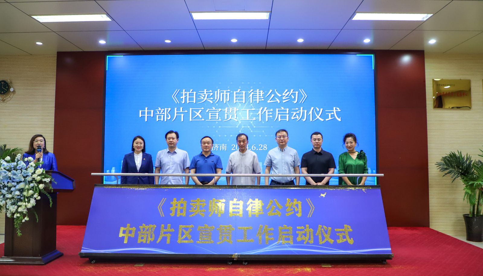 中國拍賣行業(yè)協(xié)會拍賣師分會副會長、《拍賣師自律公約》起草人和宣講牽頭人李永紅,湖北省拍賣行業(yè)協(xié)會會長石品才,河南省拍賣行業(yè)協(xié)會會長楊大為,中國拍賣行業(yè)協(xié)會拍賣師分會副會長楊宏,中國拍賣行業(yè)協(xié)會拍賣師管理部副主任、拍賣師分會自律公約監(jiān)管委員會聯(lián)絡(luò)人劉頌,中國拍賣行業(yè)協(xié)會拍賣師分會執(zhí)委、《拍賣師自律公約》宣講團(tuán)成員張怡,中國拍賣行業(yè)協(xié)會拍賣師分會執(zhí)委、中部片區(qū)牽頭人商雪梅共同啟動《拍賣師自律公約》中部片區(qū)宣貫工作,共同見證這一歷史時(shí)刻。