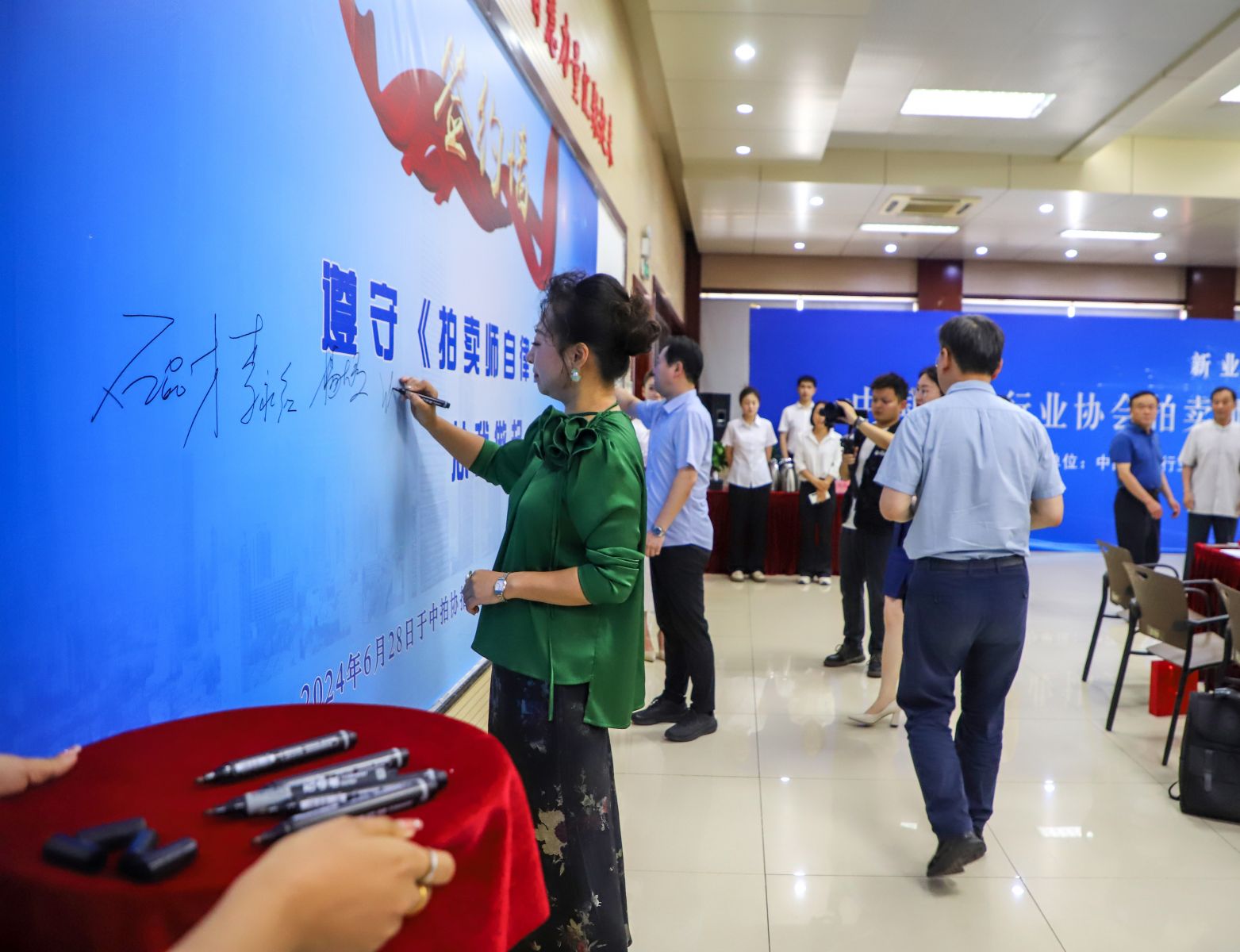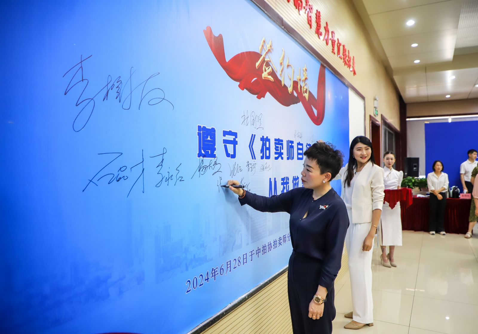 參會拍賣師現(xiàn)場進(jìn)行簽約。這是對拍賣行業(yè)的敬畏,也是一名拍賣師的莊嚴(yán)承諾。拍賣師們紛紛表示將積極響應(yīng)號召,嚴(yán)格遵守《拍賣師自律公約》,履行拍賣師的職責(zé),為拍賣行業(yè)的健康發(fā)展貢獻(xiàn)力量。