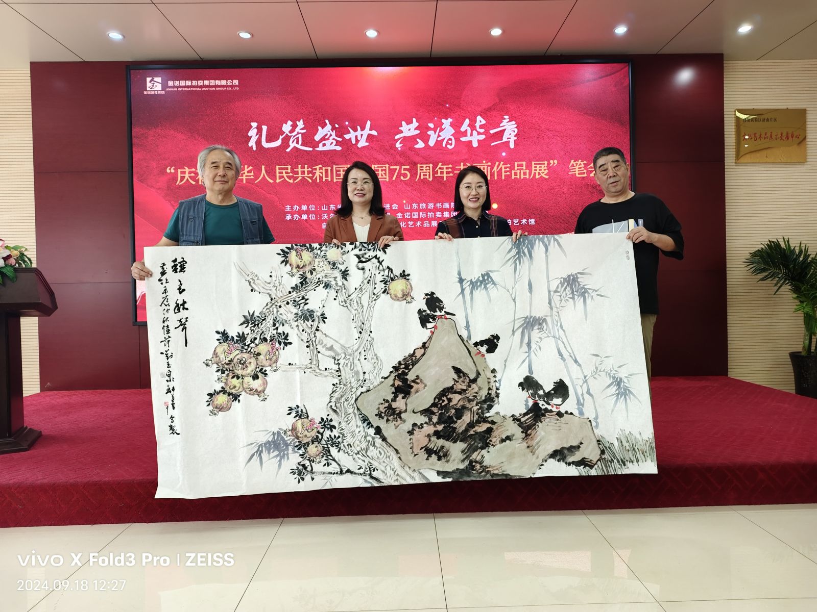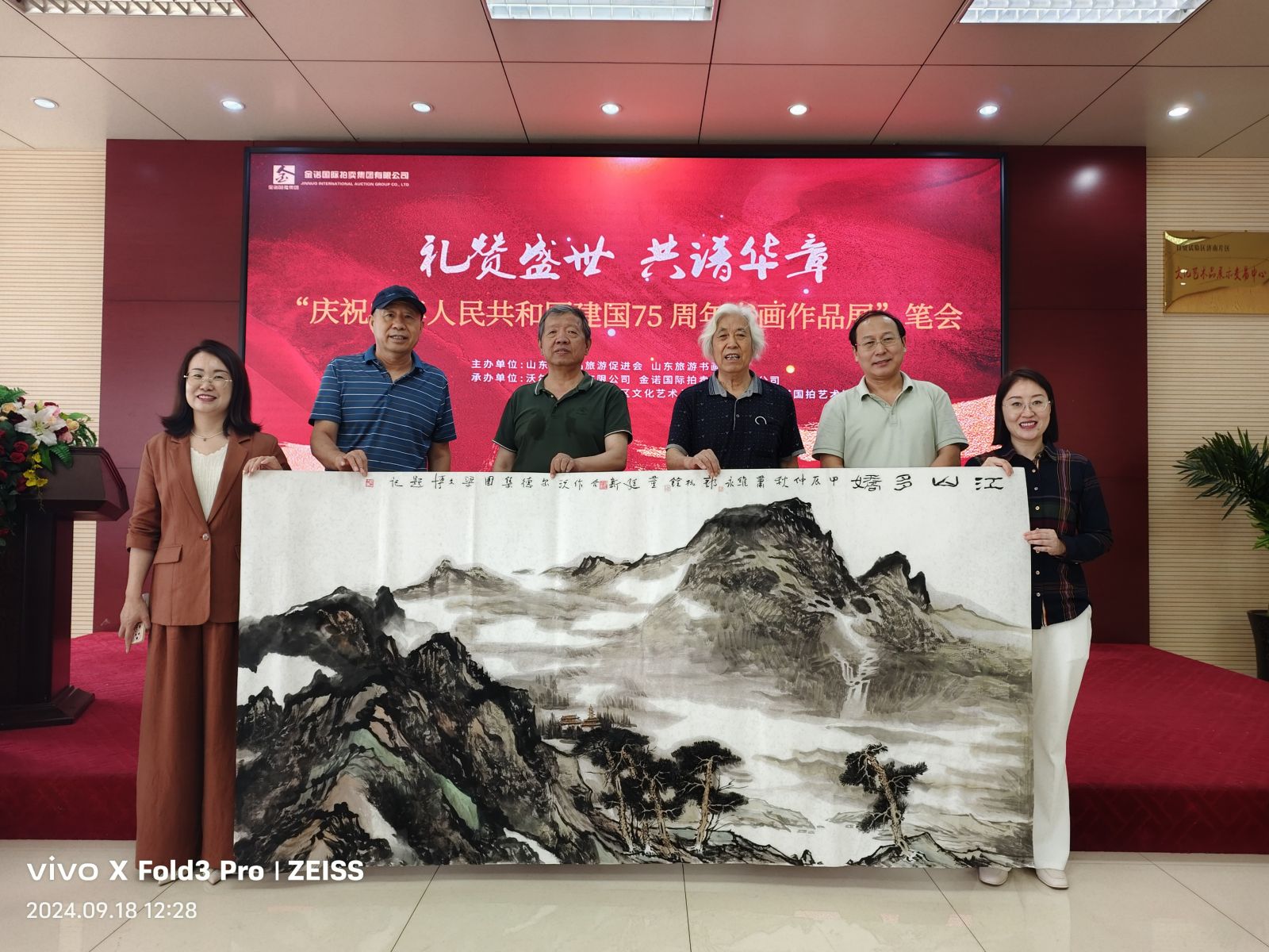 七十五載風雨兼程,七十五載砥礪前行,為慶祝中華人民共和國75周年華誕,9月18日,山東省精品旅游促會在省旅促會副會長單位沃爾德集團展開了一場精彩書畫筆會?;顒佑墒∥泵貢L、山東省精品旅游促進會會長杜文彬帶隊,著名書畫藝術家梁文博、劉玉泉、蕭維永、戴月、韓英偉、趙英水、馬林春、韓新濰、劉勝軍、郭執銓、孫華進、董廷新等參加,省旅促會副會長、沃爾德集團董事長林擘,沃爾德集團總裁、金諾國拍集團董事長商雪梅,金諾國拍集團總裁位琳陪同。