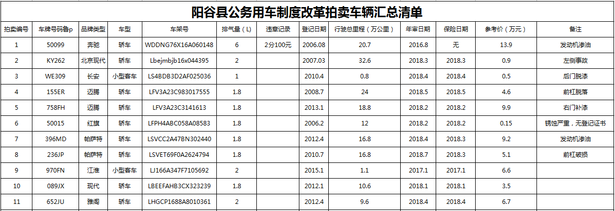 受委托,我公司定于2017年8月24日上午10時在陽谷縣創業孵化基地東樓3樓會議室(原老唐駕校)舉辦公務用車拍賣會,具體情況公告如下: